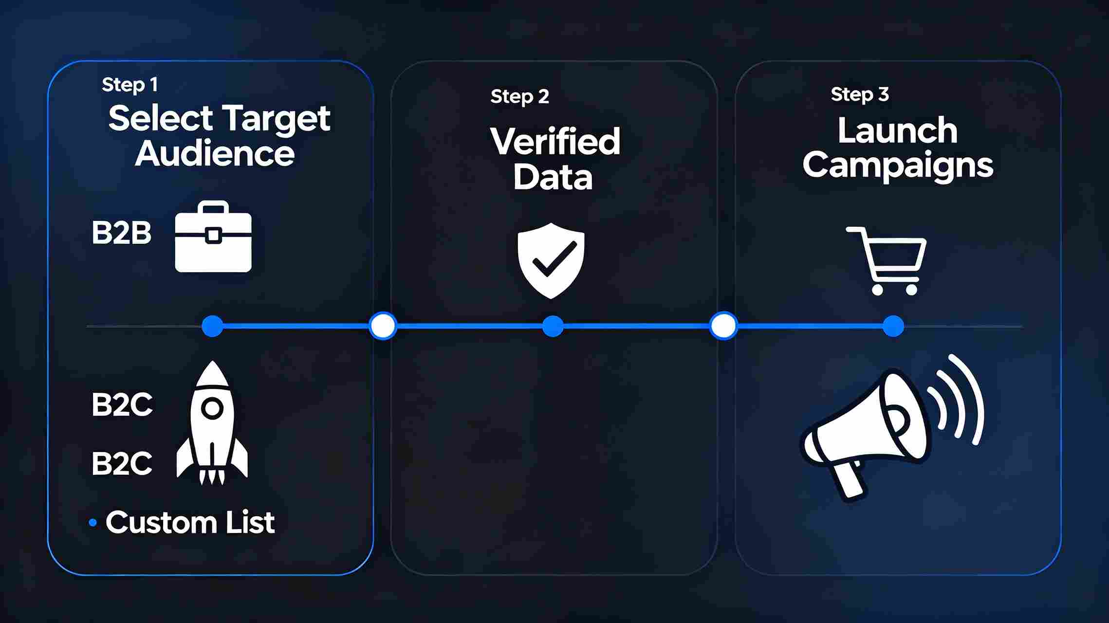 - 1.Select Your Target Audience – Choose from B2B, B2C, or custom lists.